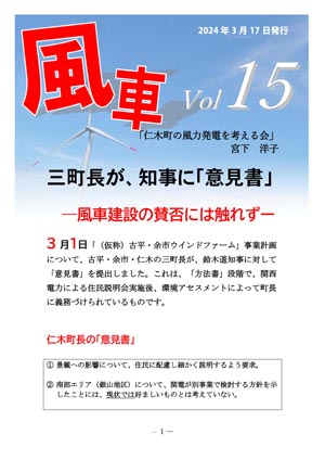 風車15 三町長が、知事に「意見書」