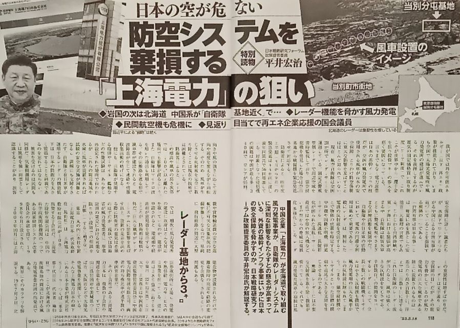 特に、北海道の陸上洋上の風車を推進する事は、防衛上きわめて危険であることを、小野寺元防衛大臣や各有識者が訴えられています。