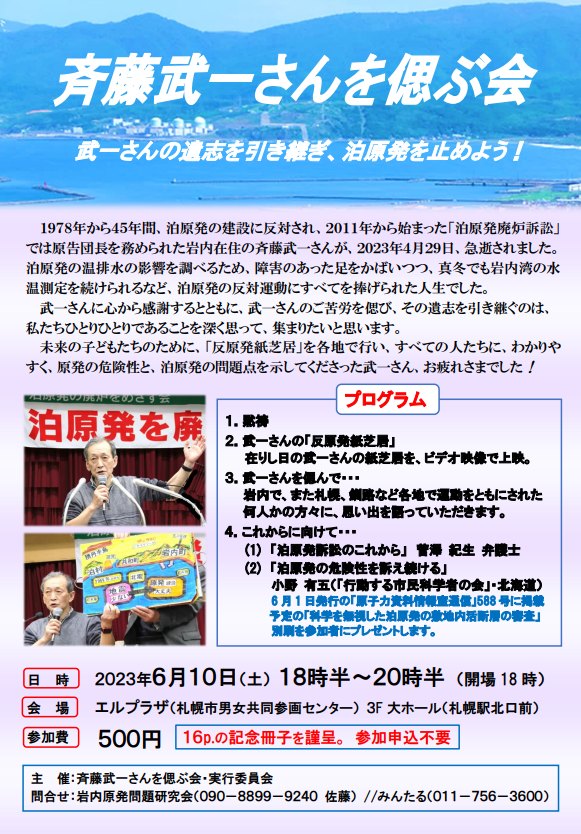 斉藤さんの功績を讃え、是非とも当日、皆さま駆け付けてください。
