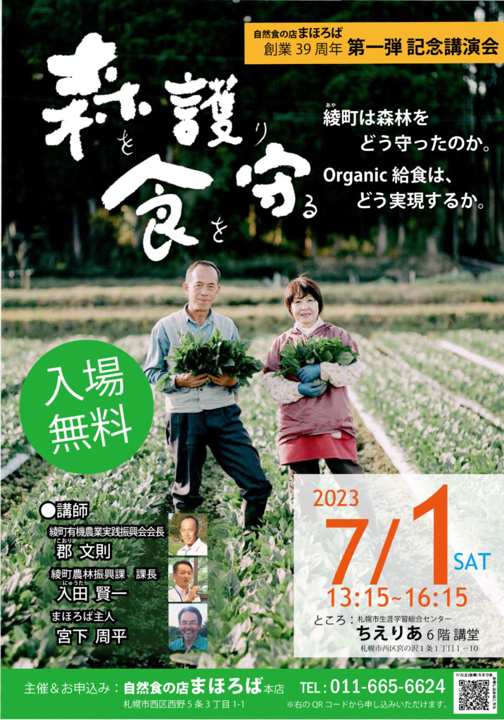 当時、農協職員として郷田前町長と「自然生態系農産物」の普及に活躍され、現在は農家として、又、綾町有機農業実践振興会の会長として活躍されている郡(こおり)さんと、ユネスコエコパーク申請時の企画室長で、現在は学校給食に地元野菜を導入している綾町農林振興課課長 入田(にゅうた)さんをお迎えして、綾の魅力を直にお話して頂き、これからの自治のあり方、各地の風力発電から森を護る為のヒント、オーガニック給食など、「これからの生き方」を皆さんと考える機会としたいと思います。是非ご参加頂をお待ちしています。