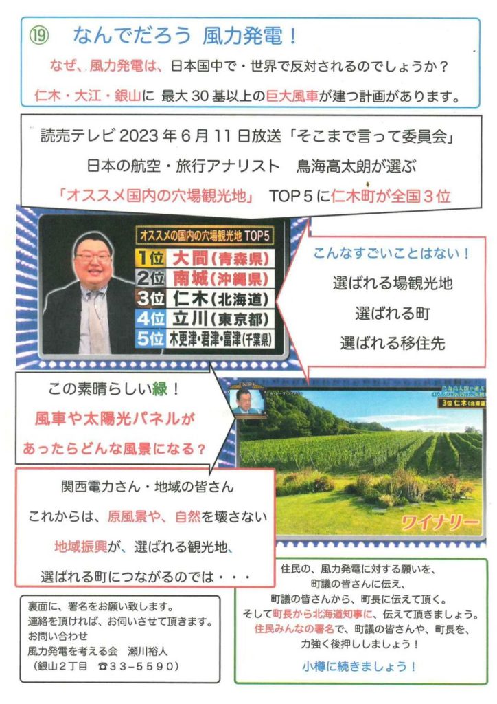 「仁木町の風力発電を考える会」です。 一見エコと思われる風力発電ですが、住民の健康被害にもかかわる、とても多くの問題を抱えています。 いっしょに学んでいきましょう。