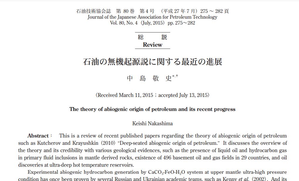 日本でも、石油の無機起源説の論文が出始めているので、下に記す。