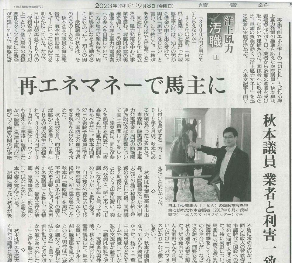 「風の祈り14章」の再エネ議連捜査、これから本格化。