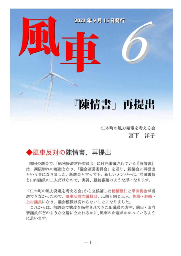 「仁木町の風力発電を考える会」です。 一見エコと思われる風力発電ですが、住民の健康被害にもかかわる、とても多くの問題を抱えています。 いっしょに学んでいきましょう。