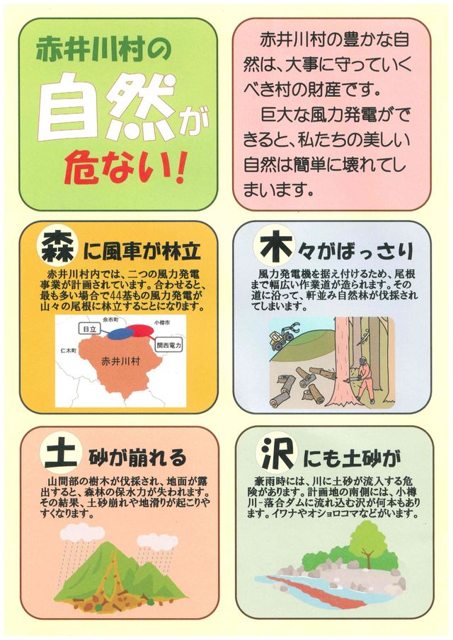 「仁木町の風力発電を考える会」です。 一見エコと思われる風力発電ですが、住民の健康被害にもかかわる、とても多くの問題を抱えています。 いっしょに学んでいきましょう。
