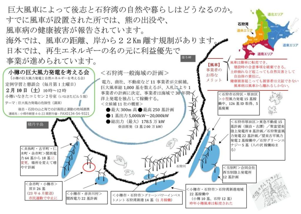 仁木町の風力発電を考える会です。 一見エコと思われる風力発電ですが、住民の健康被害にもかかわる、とても多くの問題を抱えています。 いっしょに学んでいきましょう。