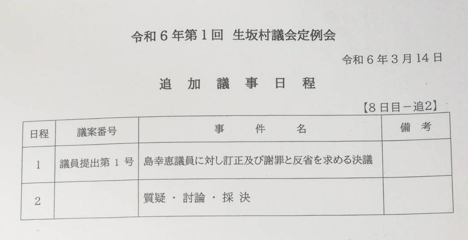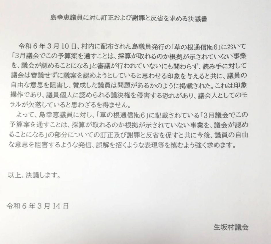決議書が出されてから私は議場外に出され、審議には加われませんでした。