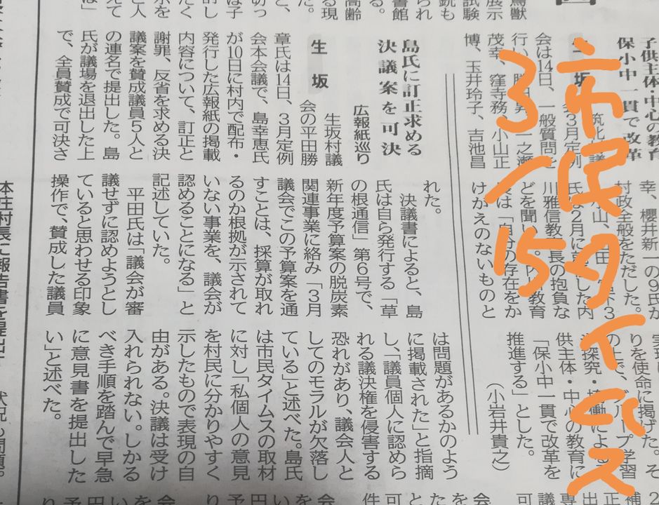 戻された時には議決されており、私は到底受け入れられないとインタビューに来た信濃毎日新聞と市民タイムスには言いました。