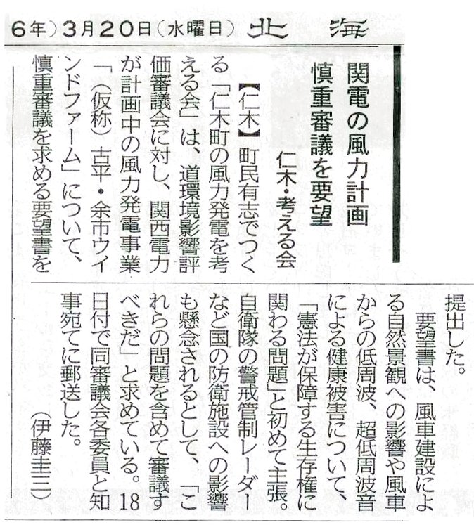 道知事が、政府、各省庁に「(仮称)古平、余市ウインドファーム事業」を推進する意見書を提出する以前に、上記審議会の審議内容にて、差し止めを願うべく、諸々の項にわたって、審議委員会と知事に要望書と「風の祈り」シリーズを郵送しました。