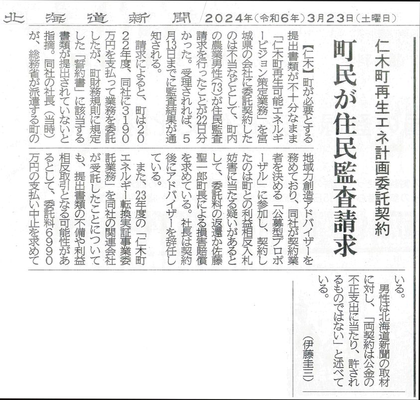 「仁木町で、≪住民監査請求≫ 再エネ計画に対して」