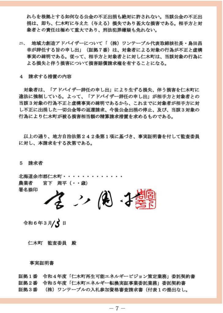 そんな今朝、ついにあのワンテーブルと町との官製談合疑惑を訴えるべく「住民監査請求」が提出され、道新に掲載、そしてその内容が一部公開されました。