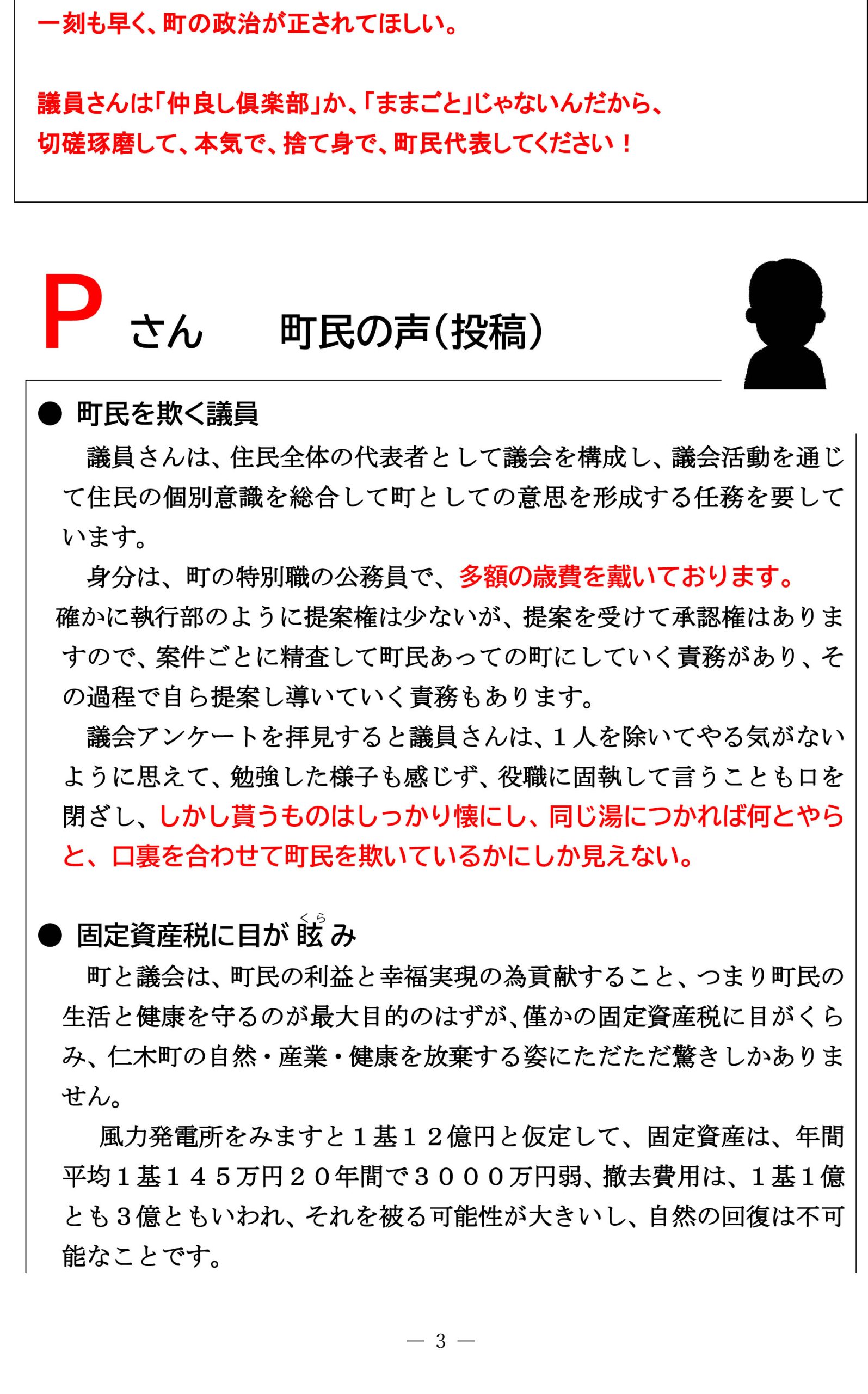 ● 町民目線を忘れた監査委員
