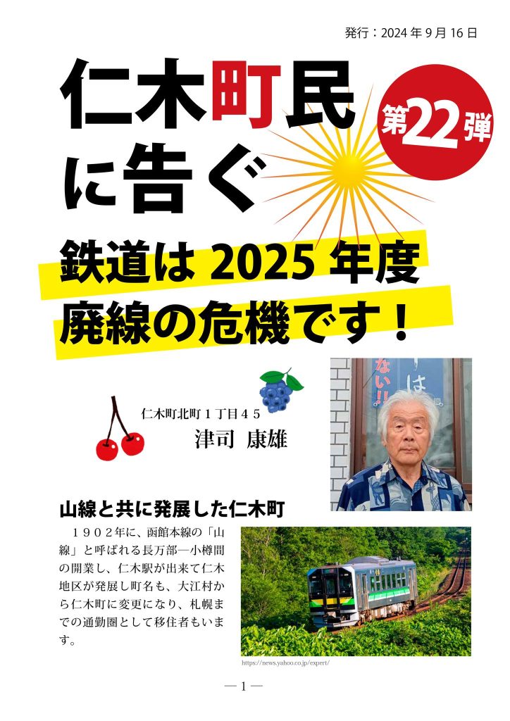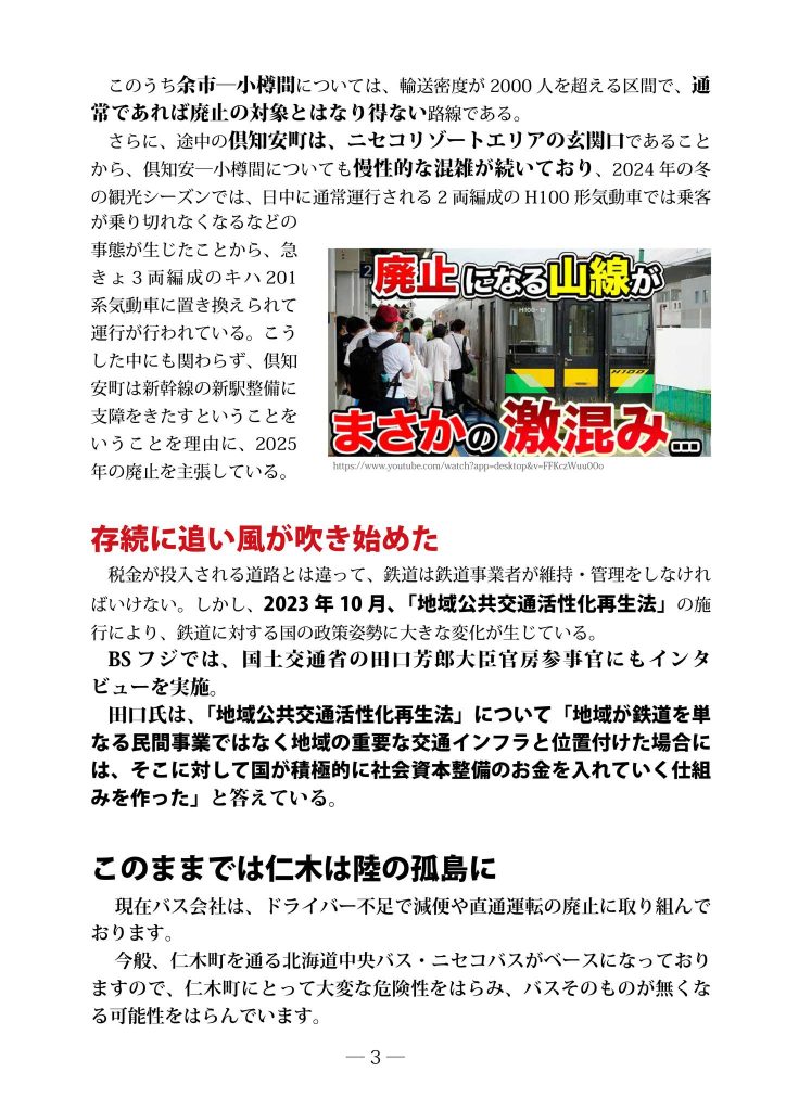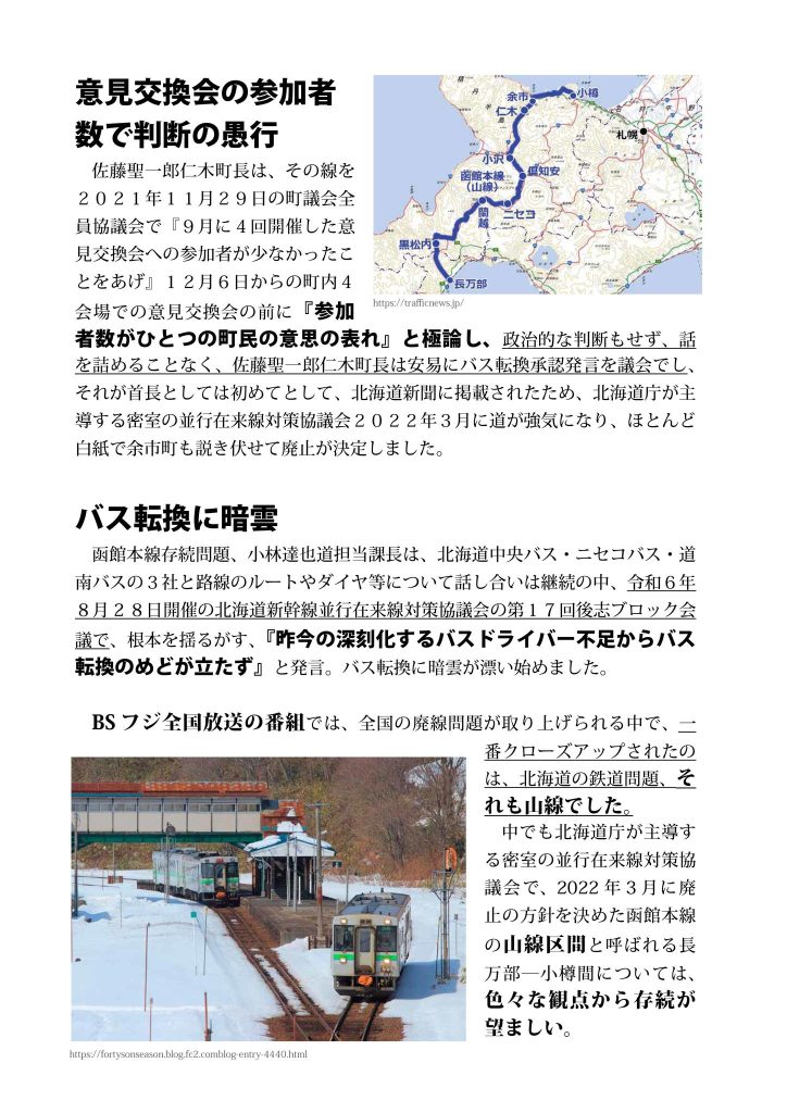 「仁木町長、『山線廃止賛成』の前言撤回を。斎藤余市町長に続け!!!」