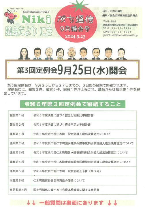 2.場所:仁木町役場庁舎3階 議場