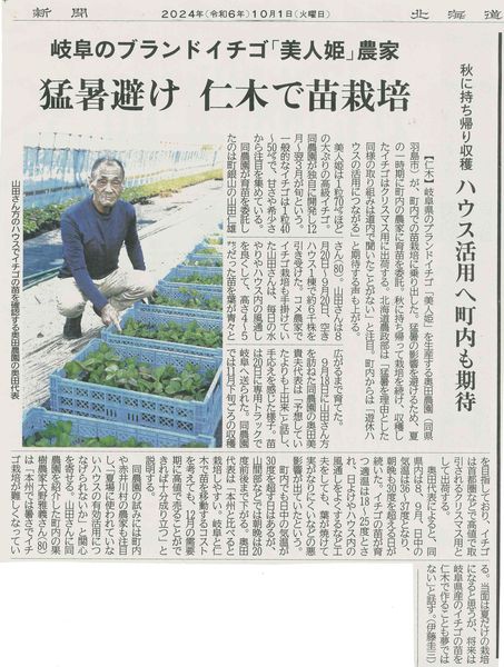 仁木町にも朗報で、特にイチゴ作りの農家さんや、若手のイチゴ栽培希望者には、格好の情報である。本にもなった超特大のイチゴが、味も、値段も世界一で、生産者にとって魅力的である。
