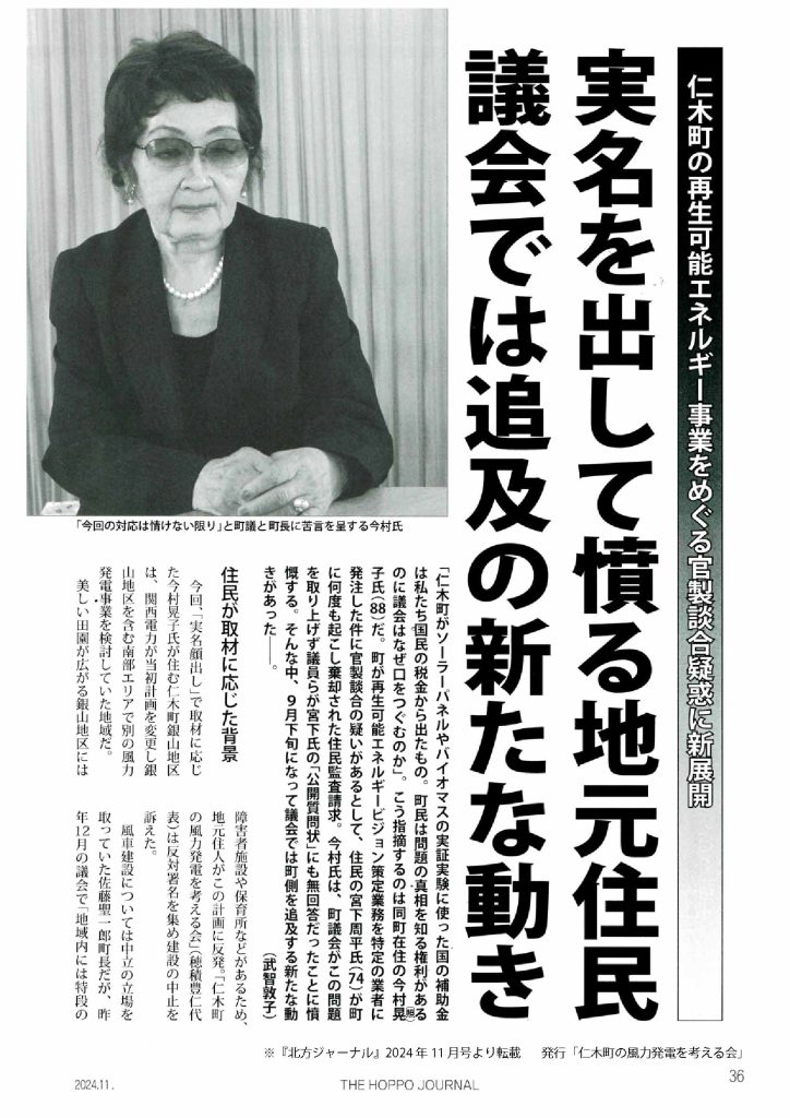 今回の再エネ事業の官製談合疑惑について、議員に、町民側が「公開質問状」を提出した結果、全員が「無回答」であることに、業を煮やし、写真入りでも、実名が明らかになっても、との思いで、北方ジャーナルに訴えられた。