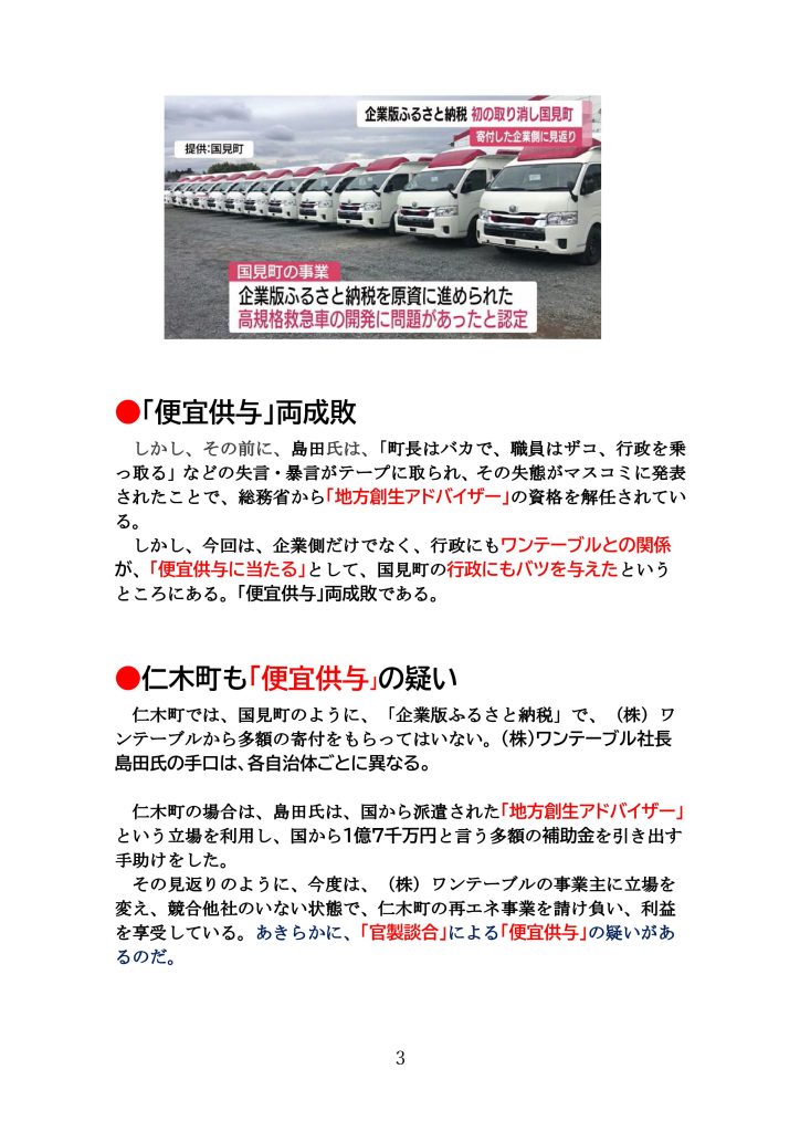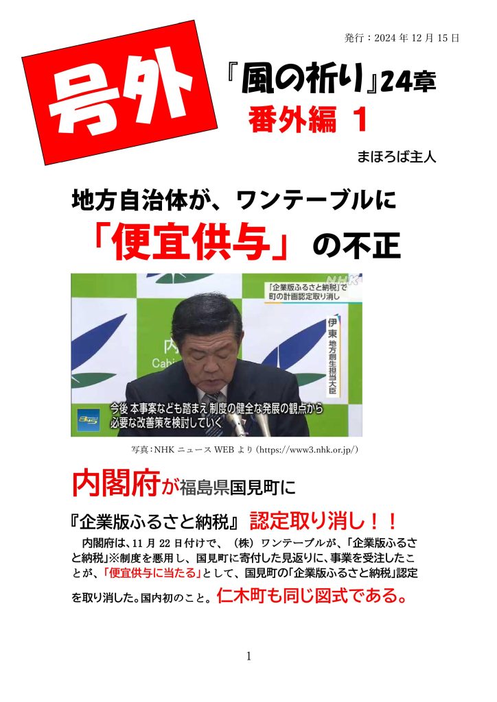 【似た構造の仁木町のワンテーブルとの『官製談合疑惑』、国の査察が入るか!!!】