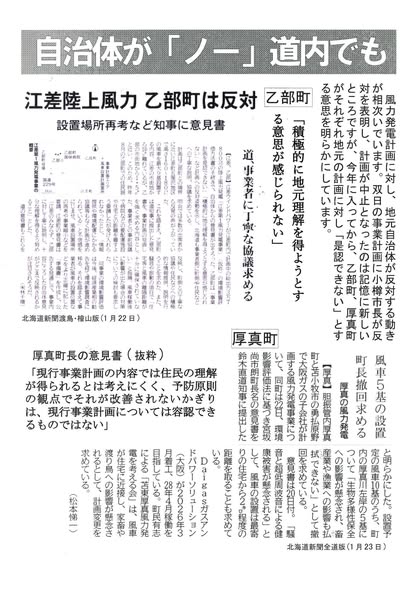 風車、福島市、乙部町、厚真町、反対表明!!