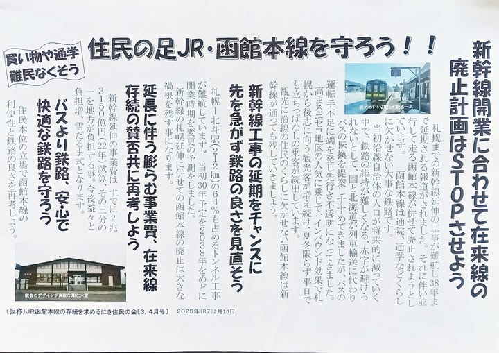 ー〈仮称〉JR函館本線の存続を求めるにき住民の会ー