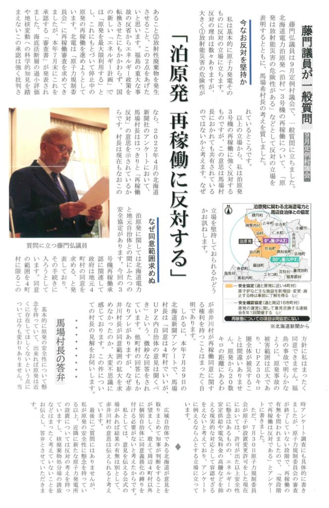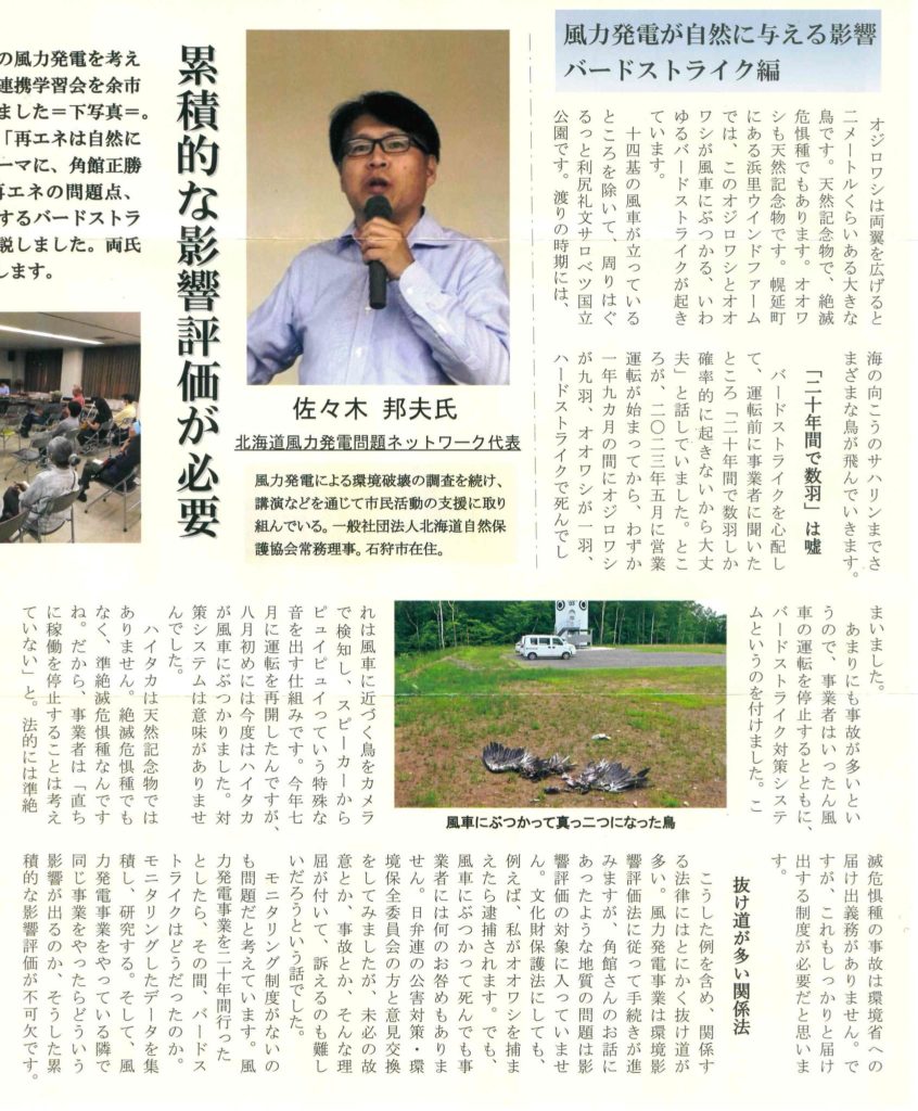 赤井川・余市の会主催、地道な運動が実を結びますように祈ります。